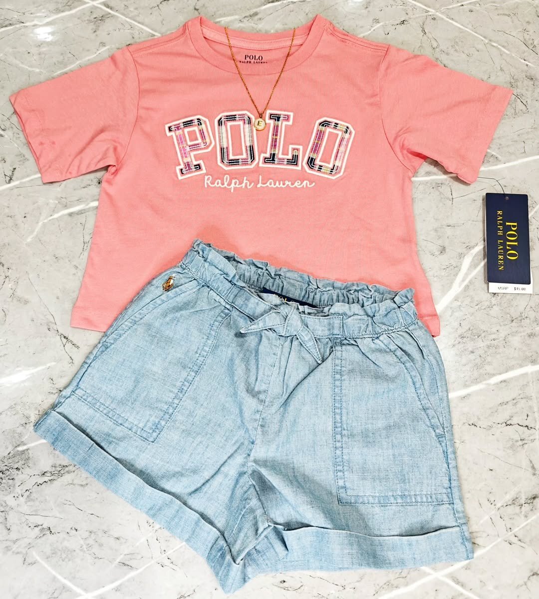 Polo Girls Denim & Logo Tee Set